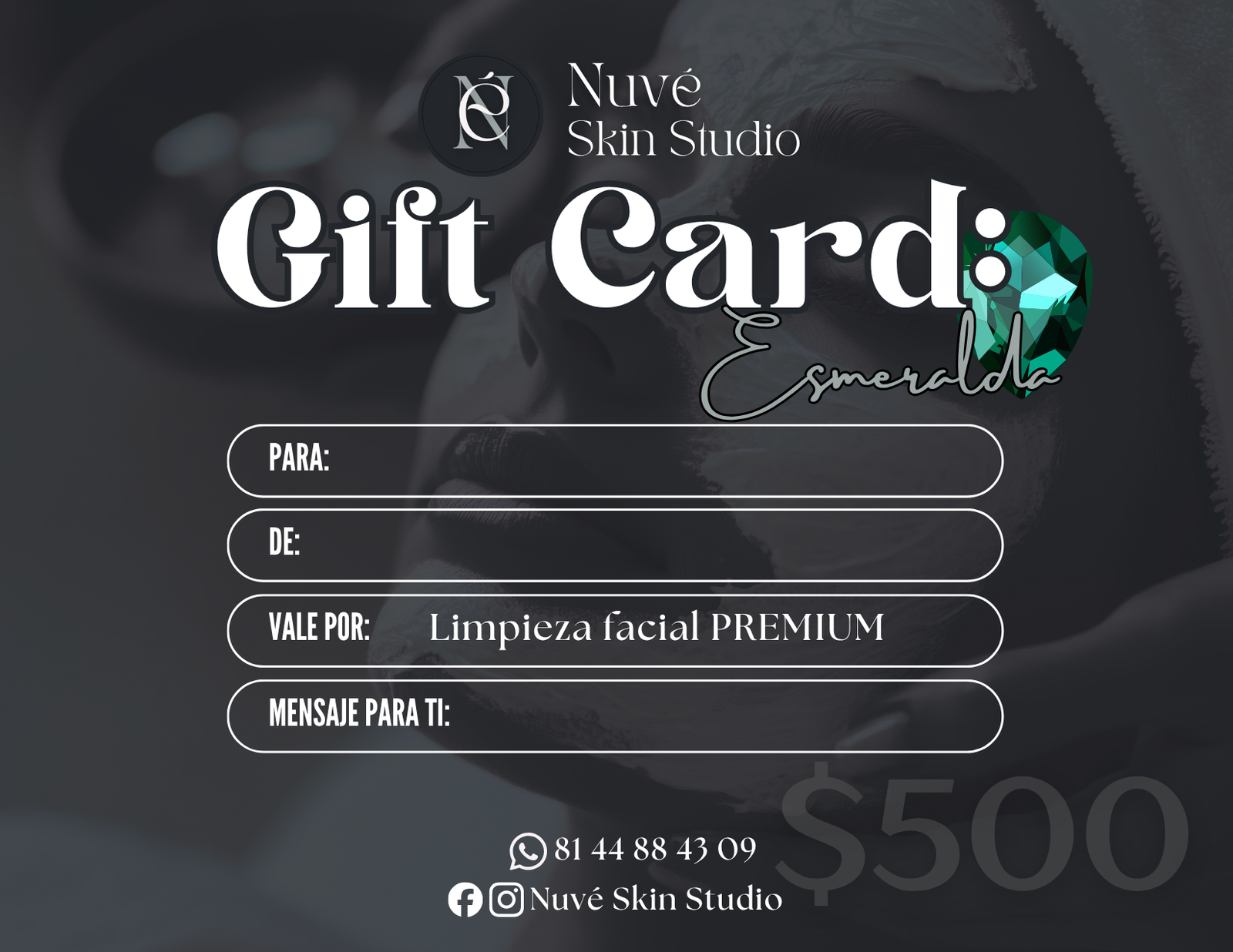 Eleva el estándar del cuidado de la piel. Esta tarjeta incluye nuestra Limpieza Facial PREMIUM completa, un tratamiento avanzado y personalizado que utiliza técnicas y productos de alta gama para resultados visibles y duraderos.